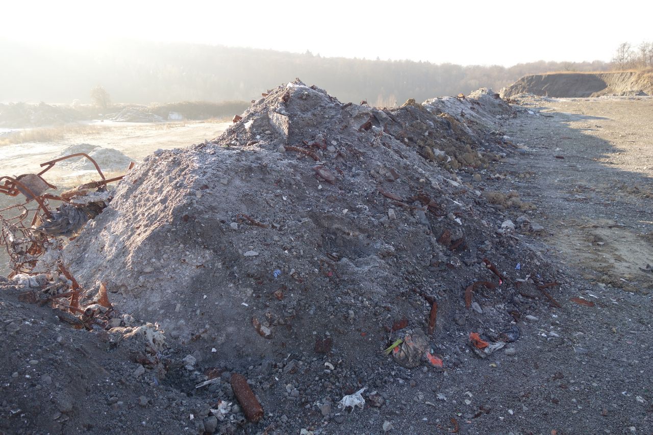 Schlackendeponie DHZ AG Lufingen, Schweiz: Durch die supersort®-Aufbereitungsanlage verarbeitete, metallberaubte Schlacke einer Kehrichtverwertungsanlage zur Deponierung.