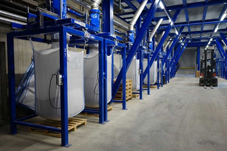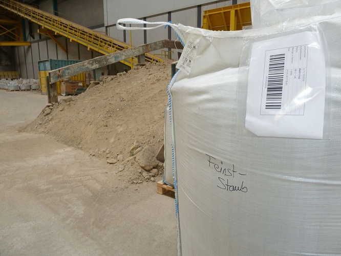 Alu und Schwermetalle werden in Big Bags für die Lieferungen abgefüllt. Der während des Verarbeitungsprozesses anfallende Staubabfall wird in einem grossen Behälter gesammelt und mit einem LkW entsorgt.