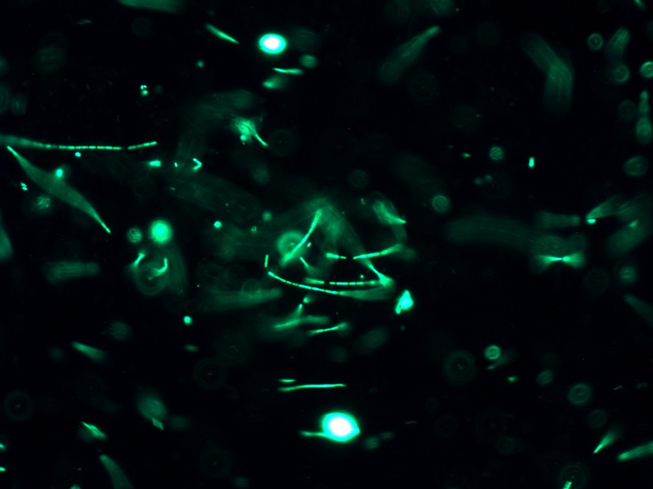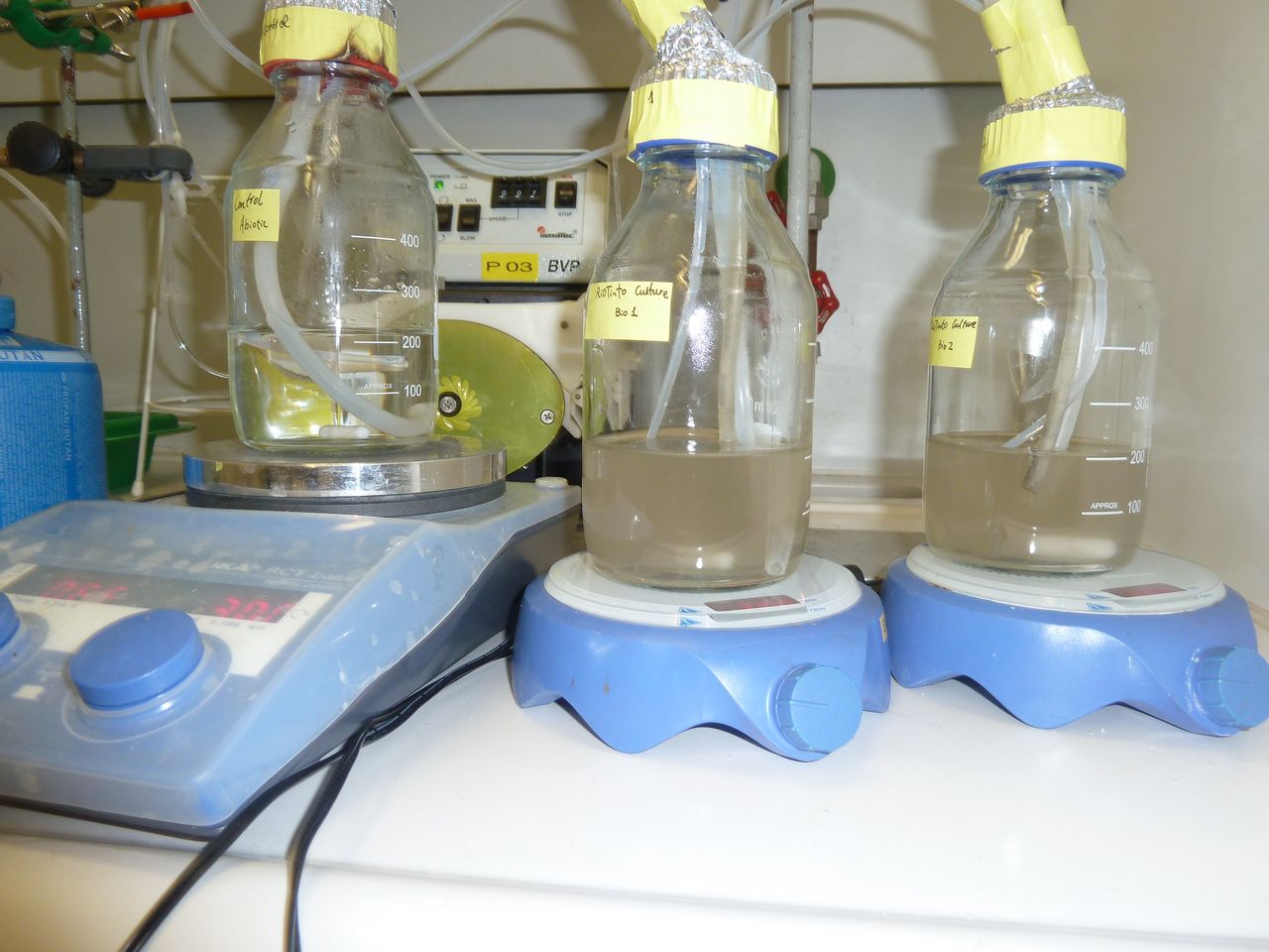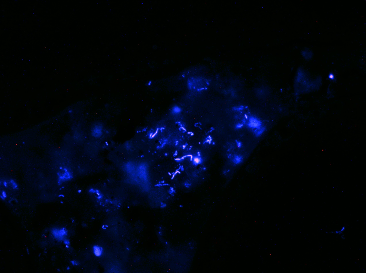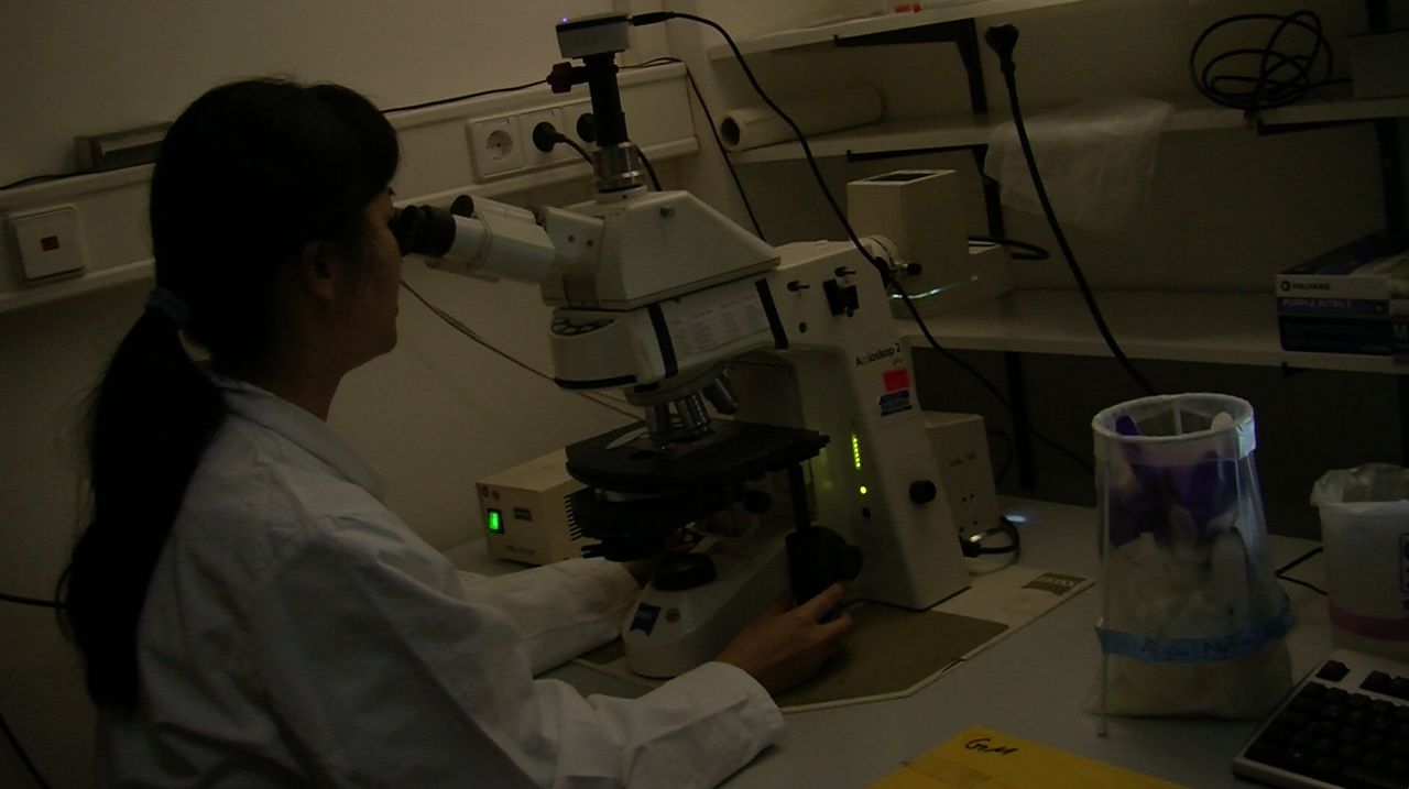 Labor Geomikrobiologie Universität Tübingen, Deutschland: Mikroskopbilder des Metallextraktionsprozesses aus Schlacken, mit Mikroorganismen des Rio Tinto.